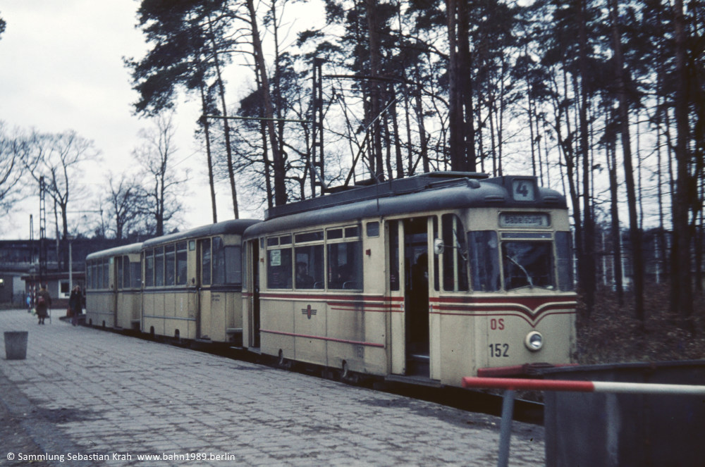 Am Hauptbahnhof steht Gotha-Tw 152 mit den beiden ex-Berliner Rekobeiwagen 267 081 und 267 090 auf der Linie 4 zur Abfahrt nach Babelsberg bereit.