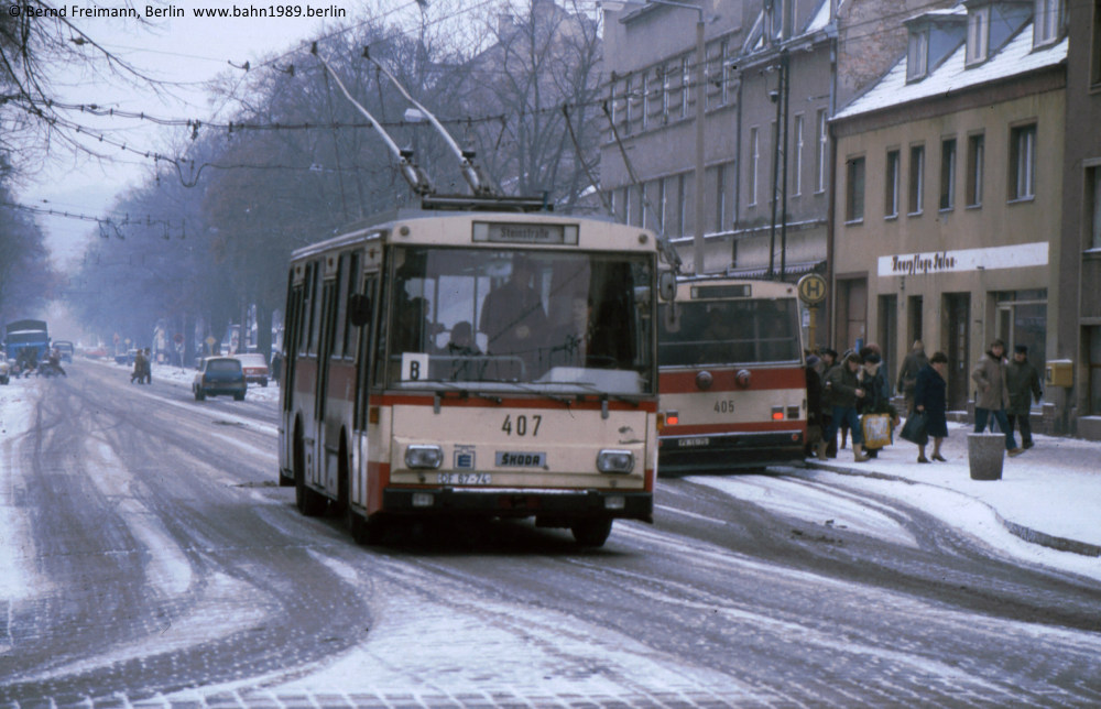 Im Jahr 1985 fuhren die ersten Serien-KT4D mit Neulack. Zufällig trafen sich am 2. Oktober 1985 zwischen den HVZ am Platz der Einheit/Ost der Wagen 033
